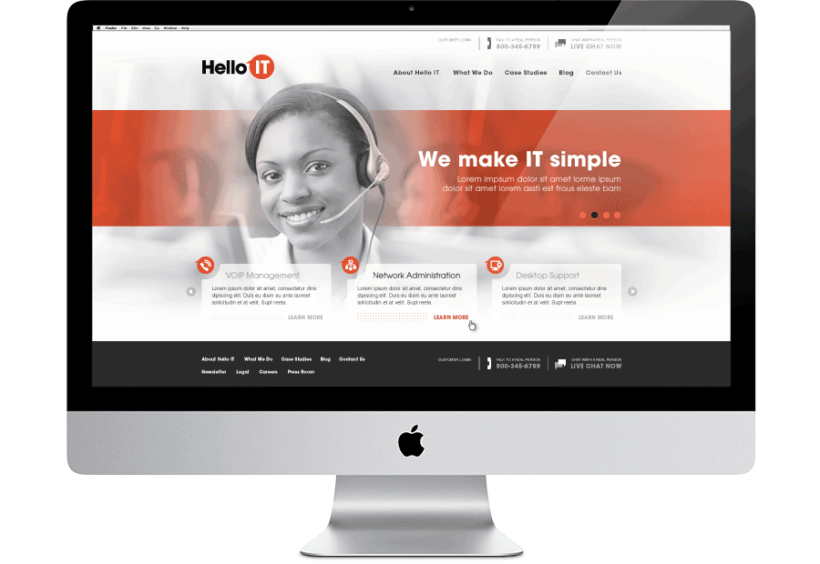Hello IT has set out to make IT simple. The personality is friendly and approachable, the color scheme simple, bold, and bright, and I don't have to tell you how perfect the name is.